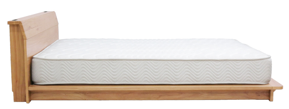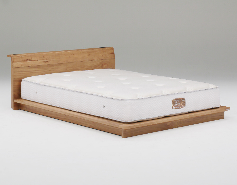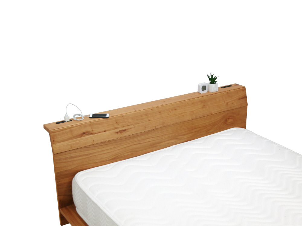 自然な素材感と風合いが温かみのある空間を演出するベッドフレーム。天然の無垢木を使用しており、木目、色合い、節などひとつひとつ違う木の表情をみせます。