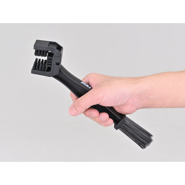 ●3面ブラシでチェーン汚れを落とす