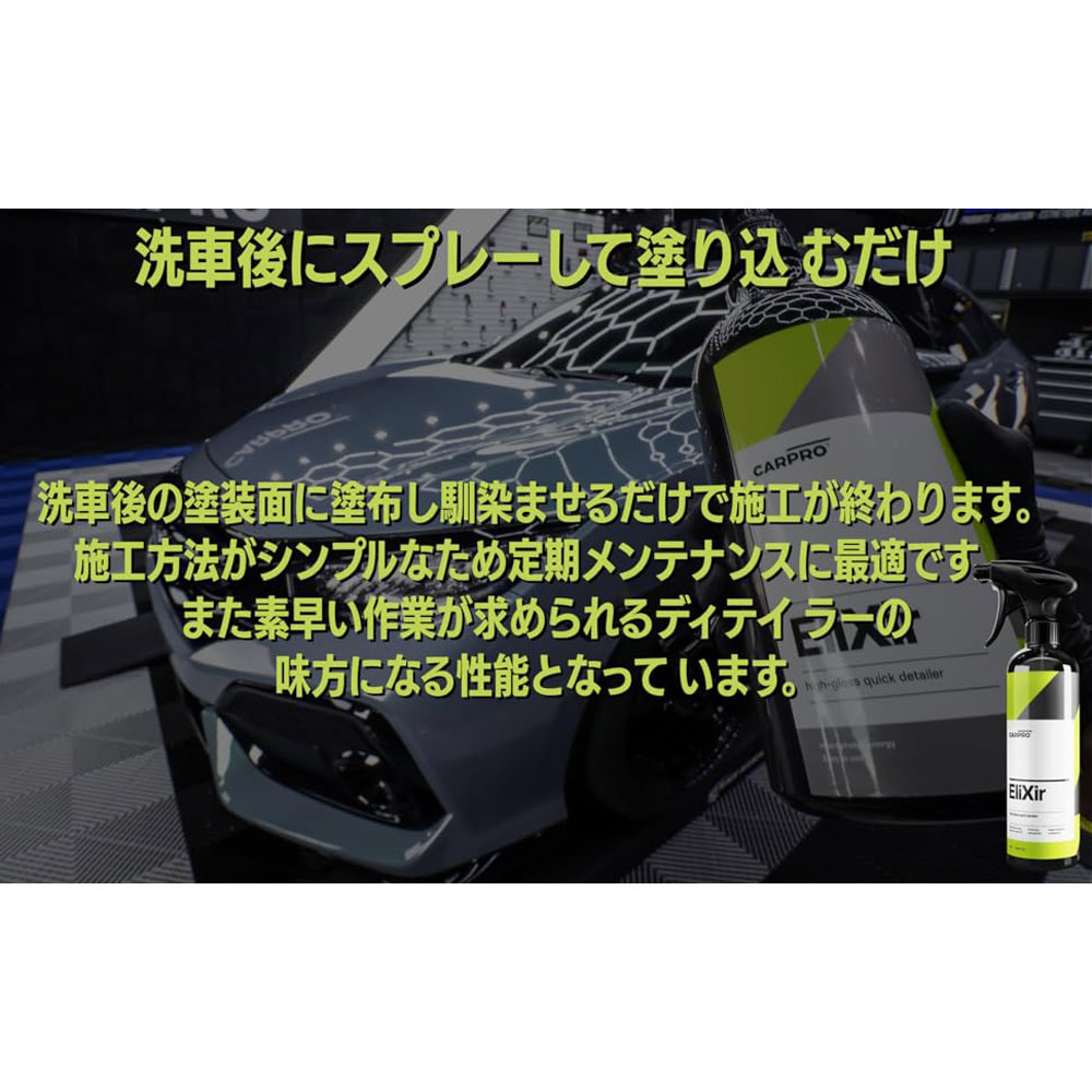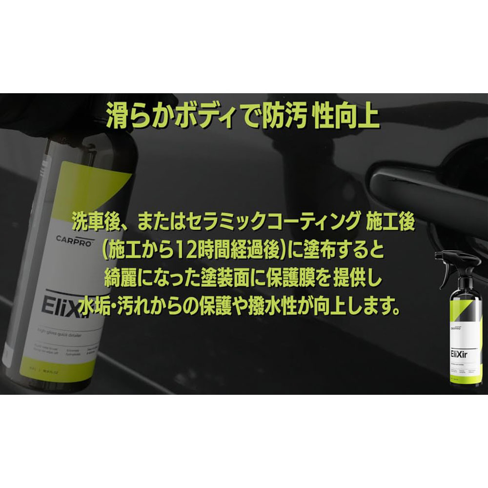 Elixirは撥水性効果のあるセラミックナノテクノロジーにおいて業界トップレベルの技術を誇るECH2Oの技術を活かし、簡易的な作業で使用出来る製品です。