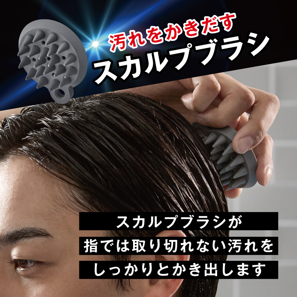ファインバブルを含み、汚れに吸着して浮かせることで頭皮の洗浄を助け、スカルプブラシとの相乗効果で頭皮ケアをサポート。