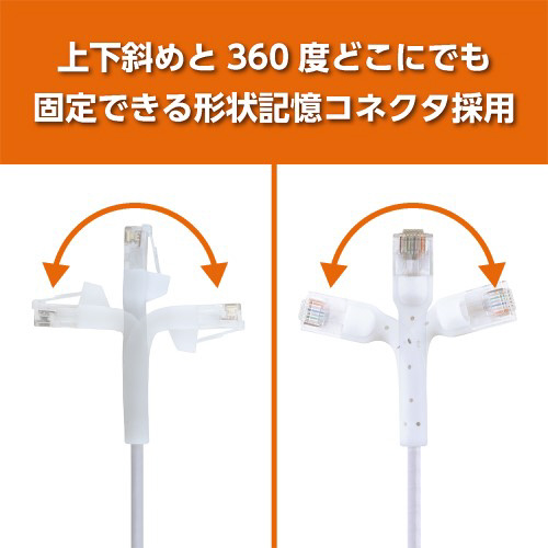 コネクタ部分を曲げて固定できるので「配線スペースに余裕がない」「配線をきれいにしたい」環境に最適です。