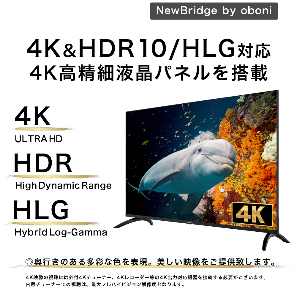 液晶テレビ NewBridge OBN-50TUD2 [50V型 /Bluetooth対応 /4K対応 /YouTube対応]