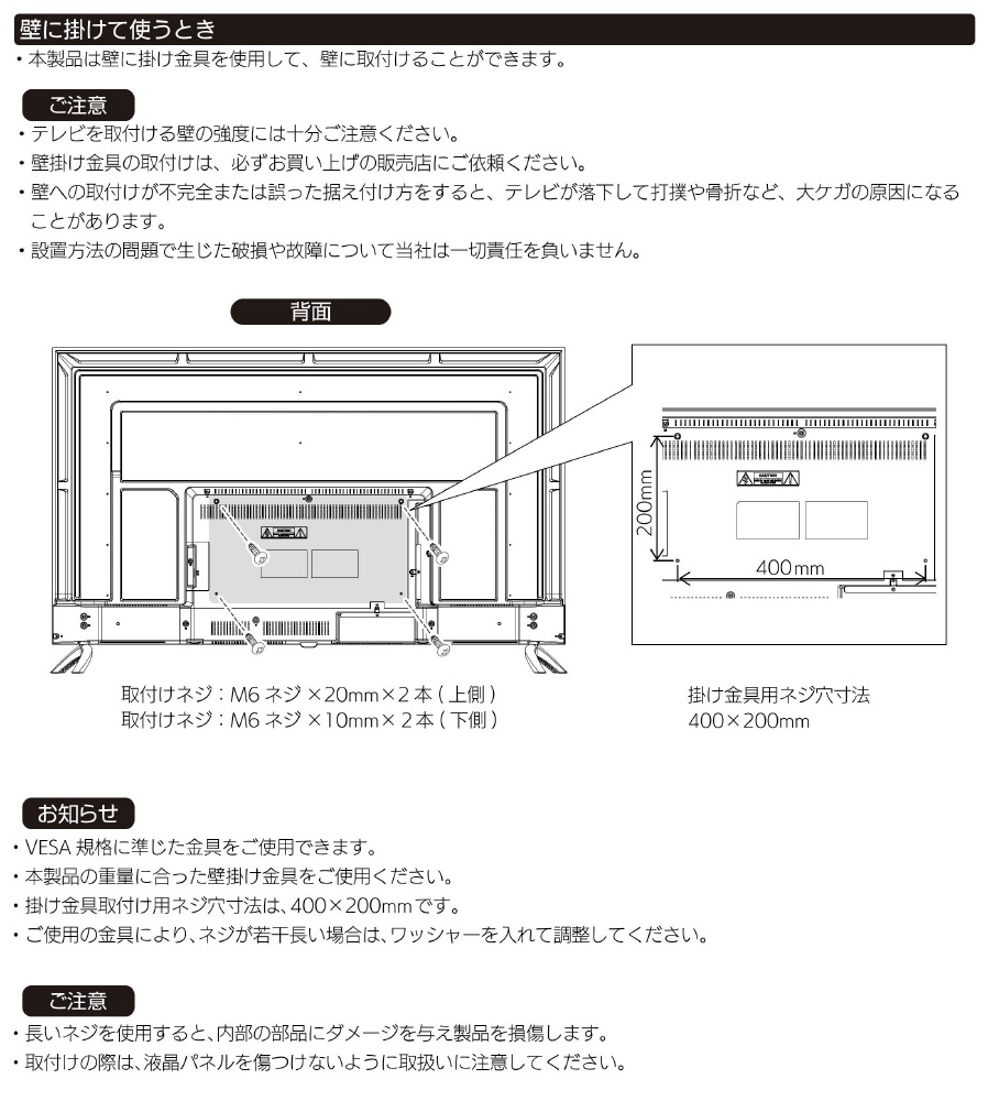 付属品 リモコン、単4形乾電池(動作確認用)×2、miniB-CASカード、スタンド一式、スタンド取付ネジ×4