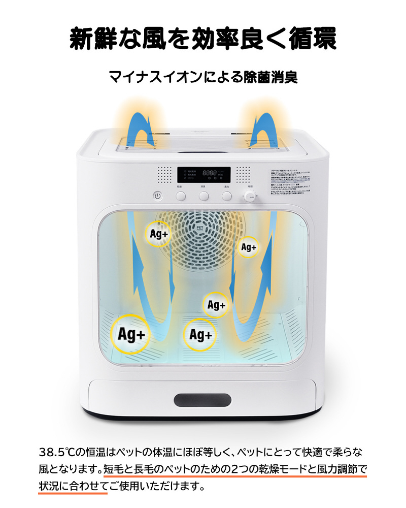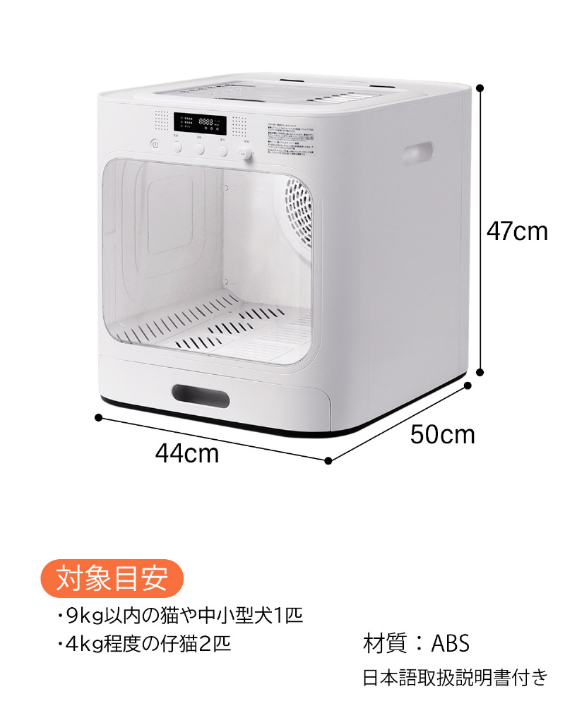 ※猫に慣れてもらう為、ドライルームご入後にまずは10〜20分設定でお試しください。その後ペットの反応を見て時間や風を調整してください