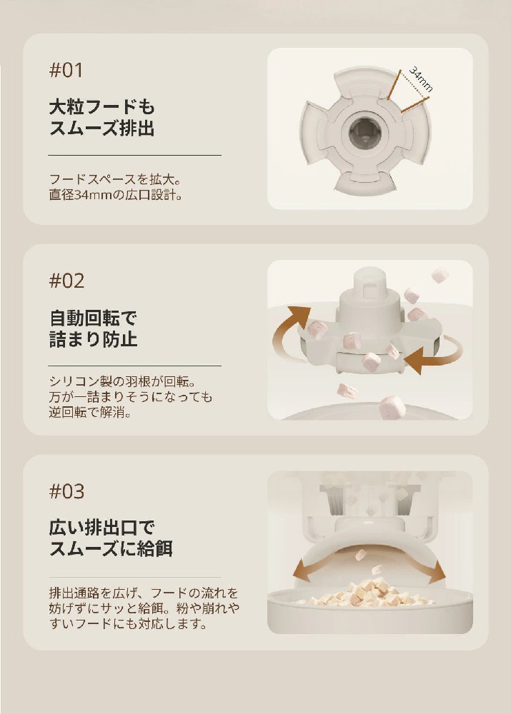 詰まりにくくしっかり給餌