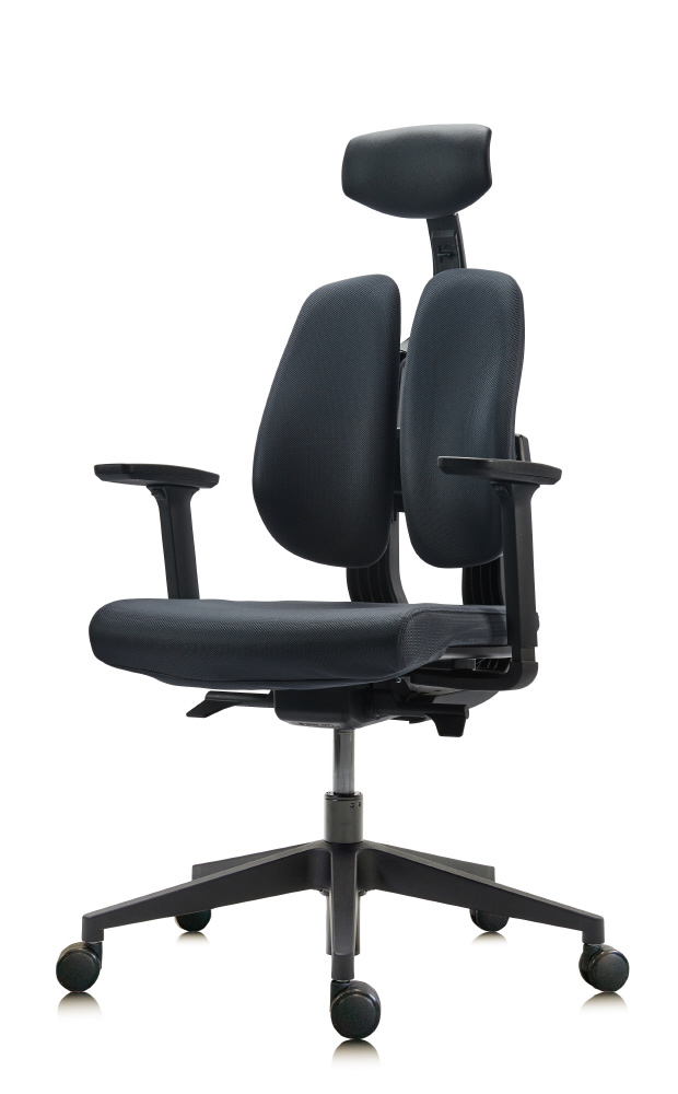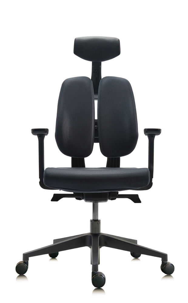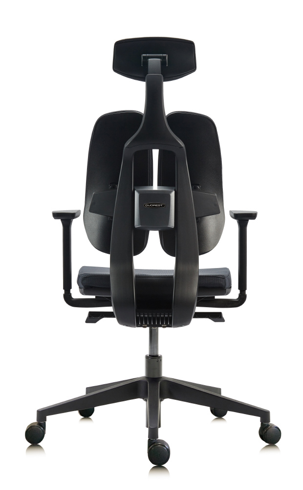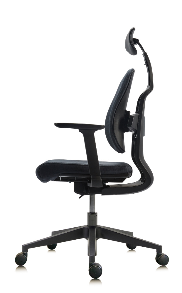 2枚の背もたれが均等に体圧を分散し、着座姿勢を長時間楽に保ちます。