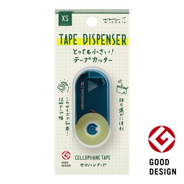 12mm幅×5m巻きのセロハンテープが内蔵された、とっても小さいテープカッターです。常に携帯できるので、外出先でのちょっとした封留めや工作作業などに最適です。表側のパーツが透明のため、テープの残量も一目でわかります。