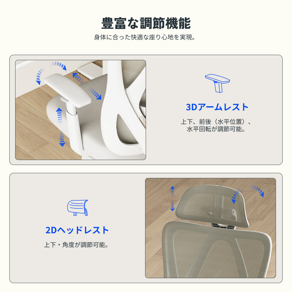 ランバーサポート調節可能