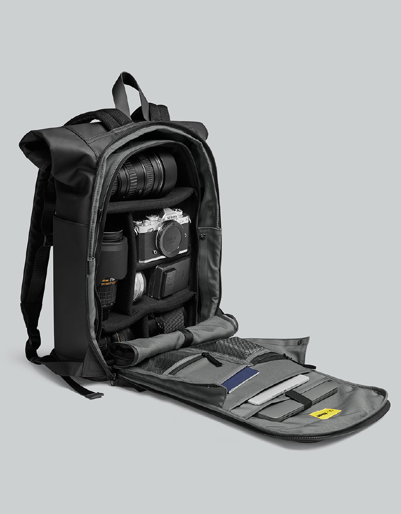 取り外し可能なカメラホルダーと調節可能な仕切りを備えており、写真家にもそうでない人にも最適です。