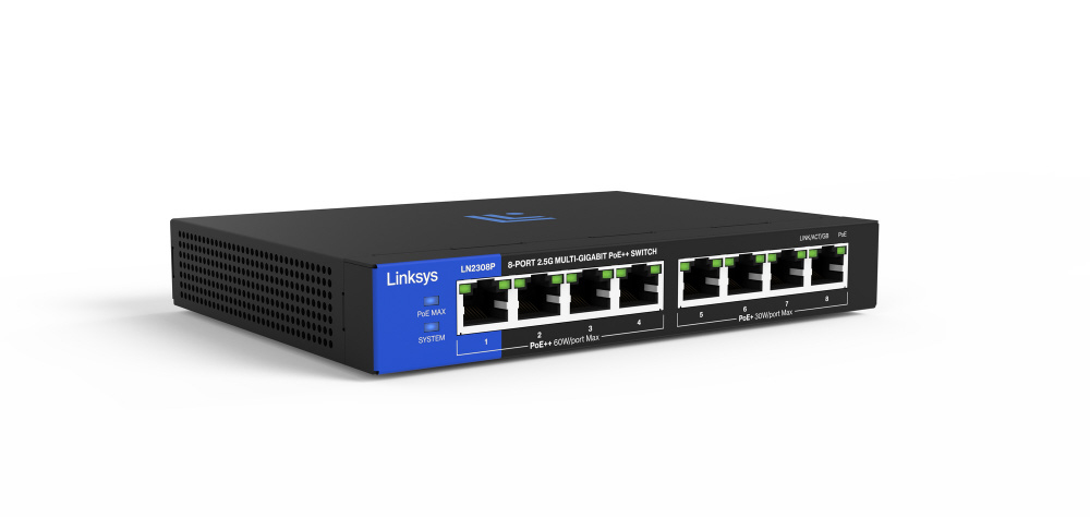 スイッチングハブ [8ポート /2.5Giga対応 /PoE給電 /ACアダプタ] LINKSYS 8-PORT 2.5G MULTI-GIG UNMANAGED PoE++ SWITCH LN2308P-AH