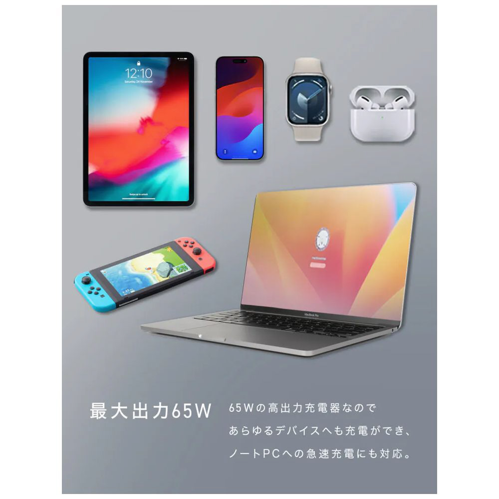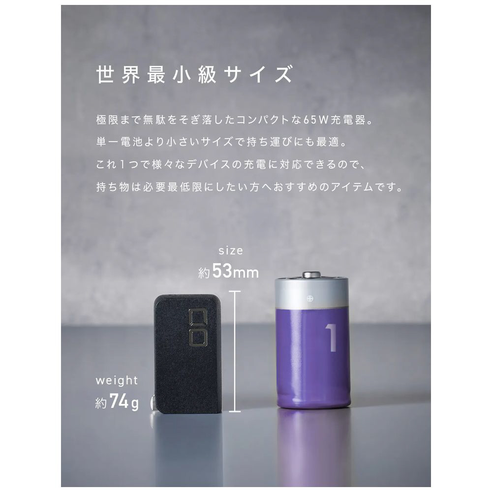 スマホからノートPC(65W)までこれ1台でOK!手軽に持ち歩ける、65W級充電器のベストエントリーモデル
