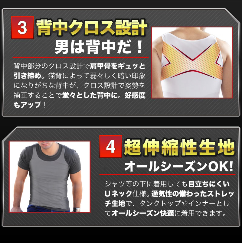 背中クロス設計が姿勢をサポートし、男らしい背中へ。