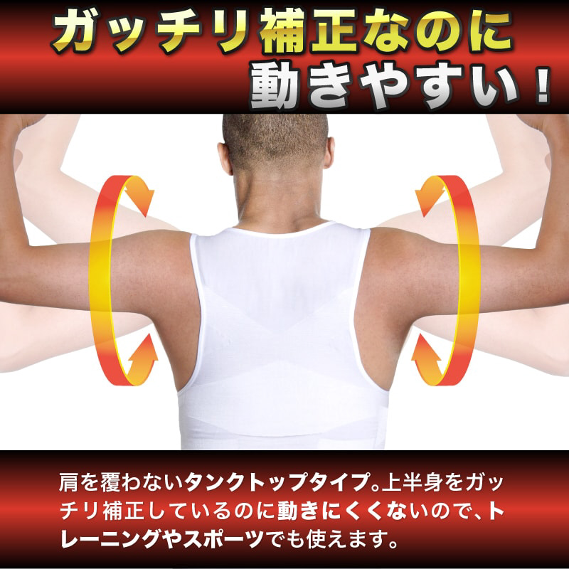 ウエスト・胸・背中それぞれの部位に合った設計+特殊加圧編みが上半身をガッチリ引き締め。