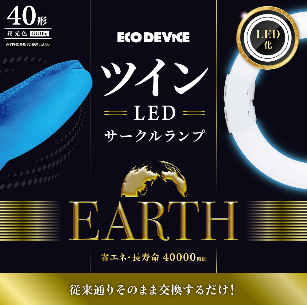 そのまま取り換えるだけ 40形 ツインLEDサークルランプ 昼光色 EFHD40LEDーN