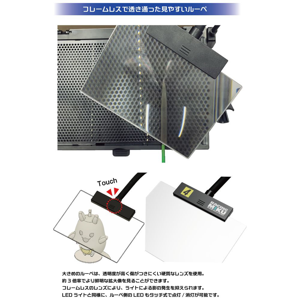 LEDライトとルーペにはレーシングミク&エントラントのロゴデザイン入り!