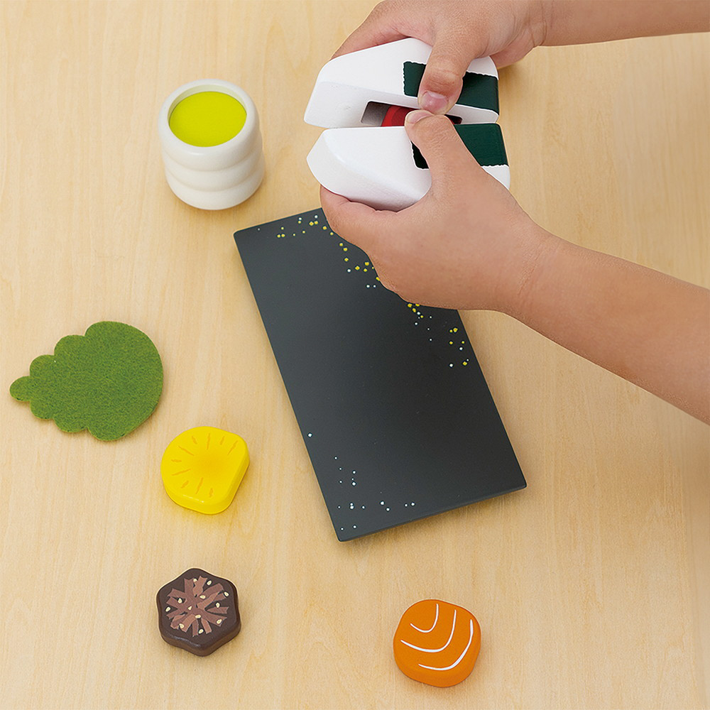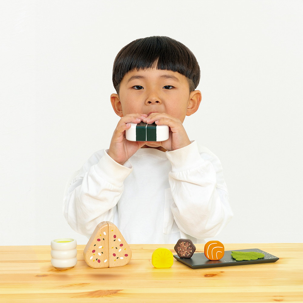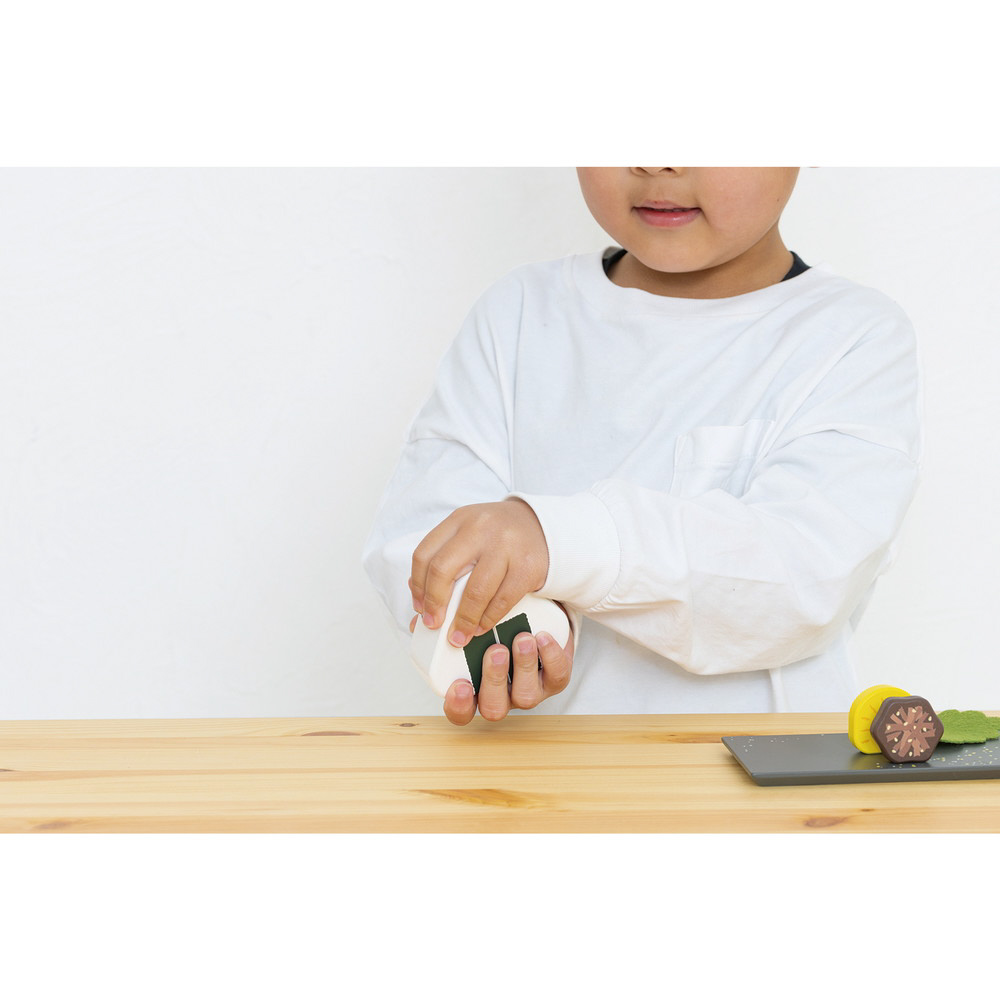 具材を選んでおにぎりを握ろう。おにぎりを割れば具材が出てきます。