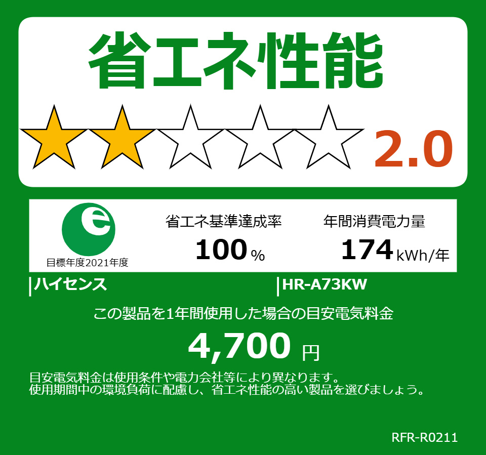 年間消費電力量 174kWh/年