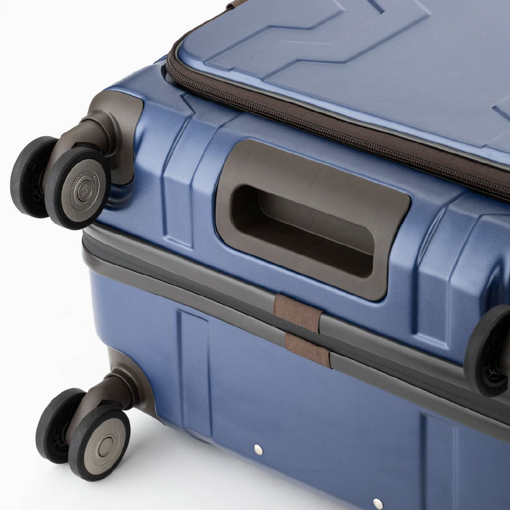 ・拡張部分の上下には特許技術を用いた形崩れを防止する特殊プレートを内蔵 ※荷物の出し入れ時にスーツケースを横にしても形状が崩れません。
