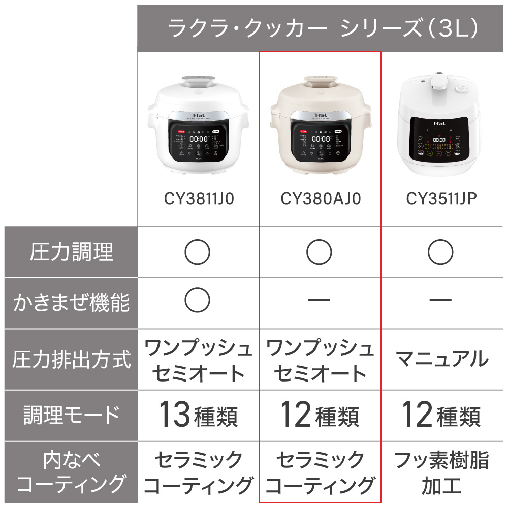 ラクラ・クッカー 電気圧力鍋 T-FAL CY380AJ0