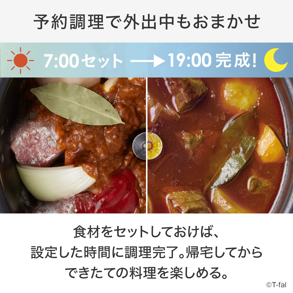 予約開始後すぐに調理を行い、最適な温度を保ちながら、最後に仕上げ加熱を行う「スマート予約調理プログラム」が付いて、お出かけ前に準備しておくと帰宅時にアツアツの出来立てが食べれます。