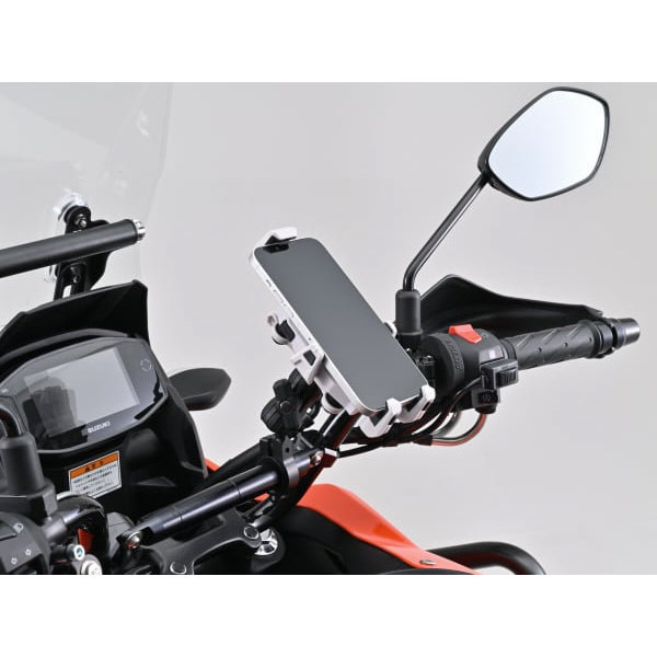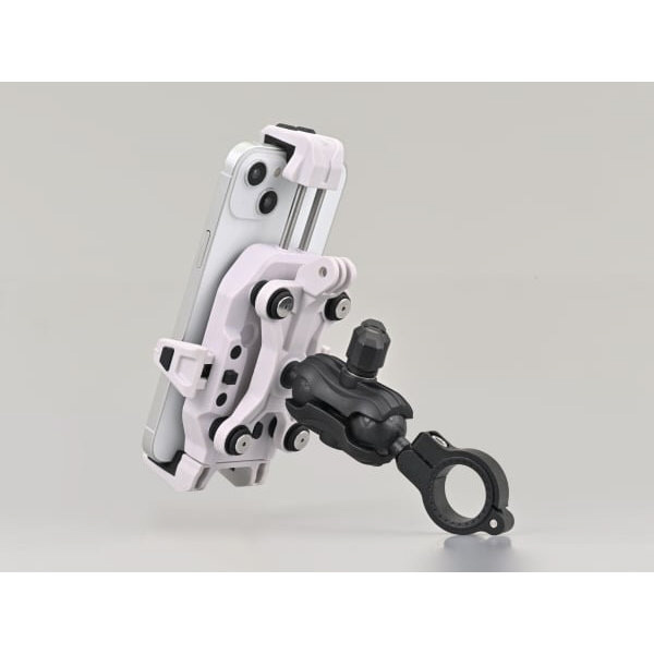 マウントとホルダー間に設けた振動吸収ダンパーと、アーム固定部の振動吸収クッションでスマホを振動から守ります。
