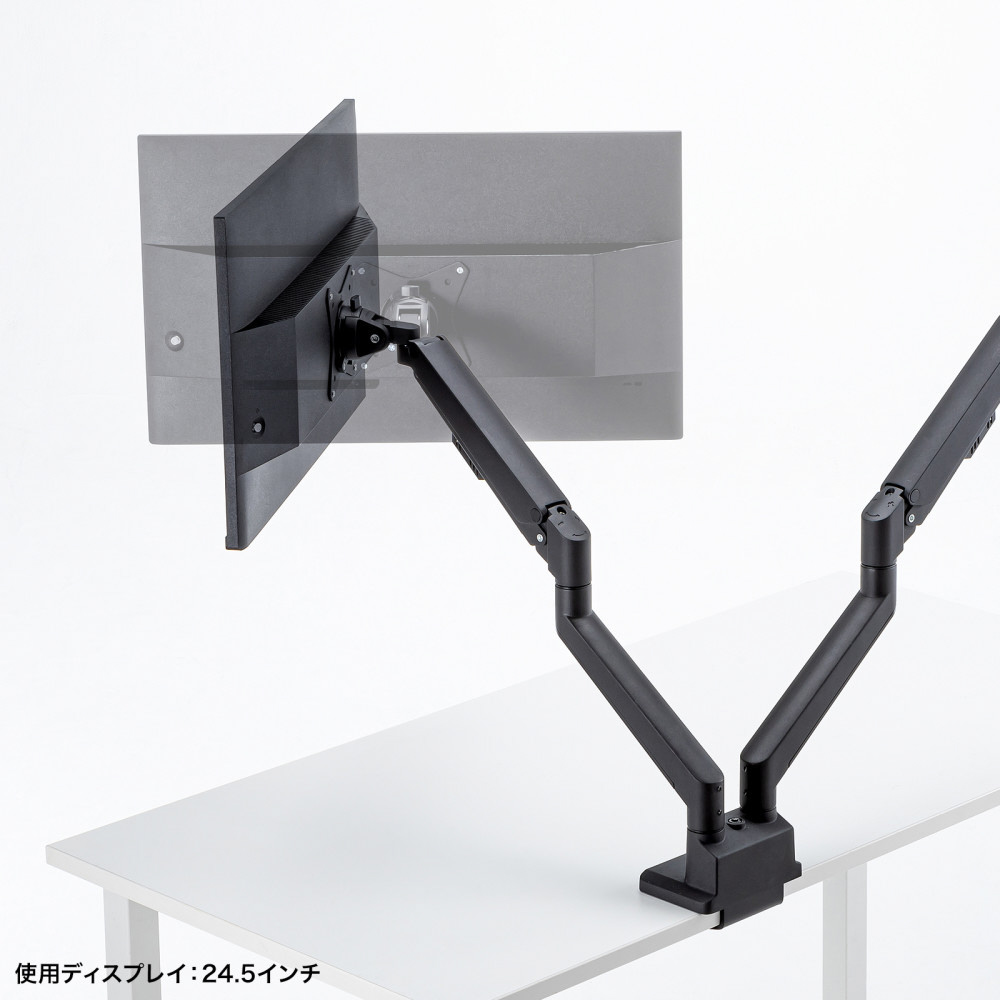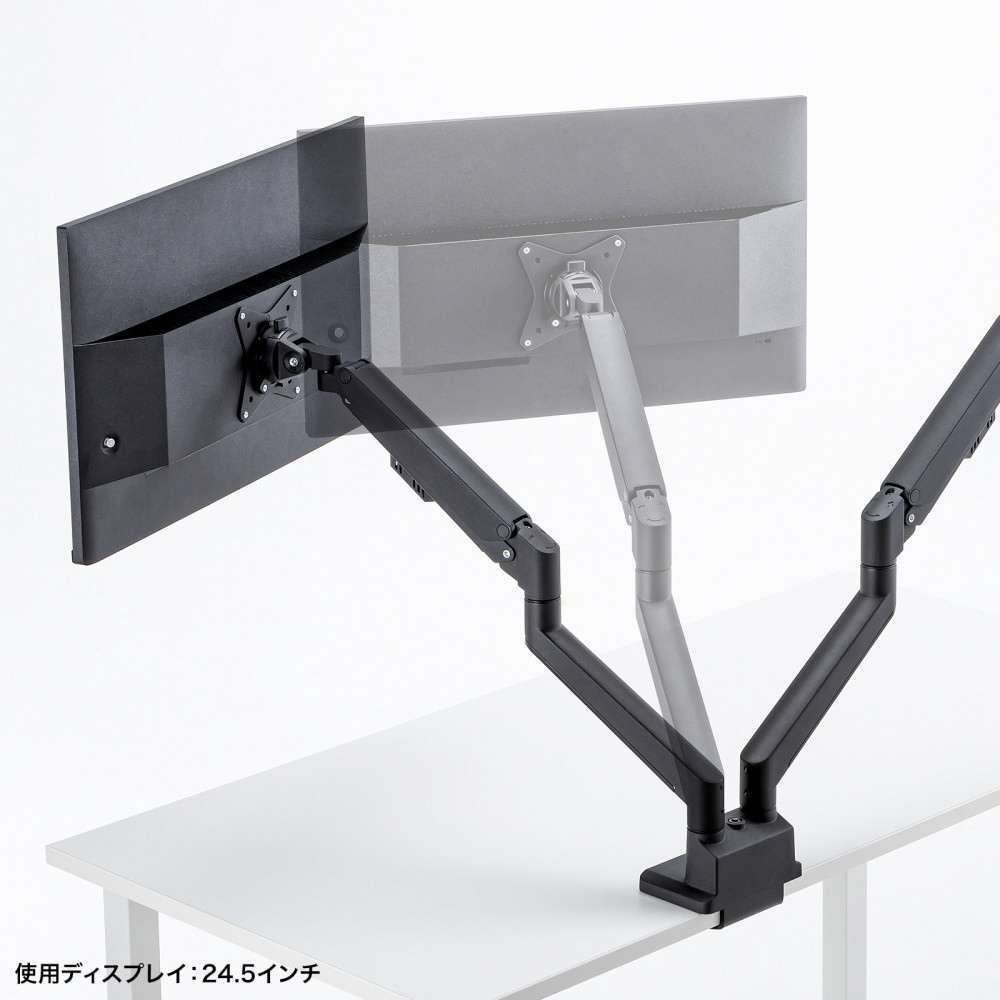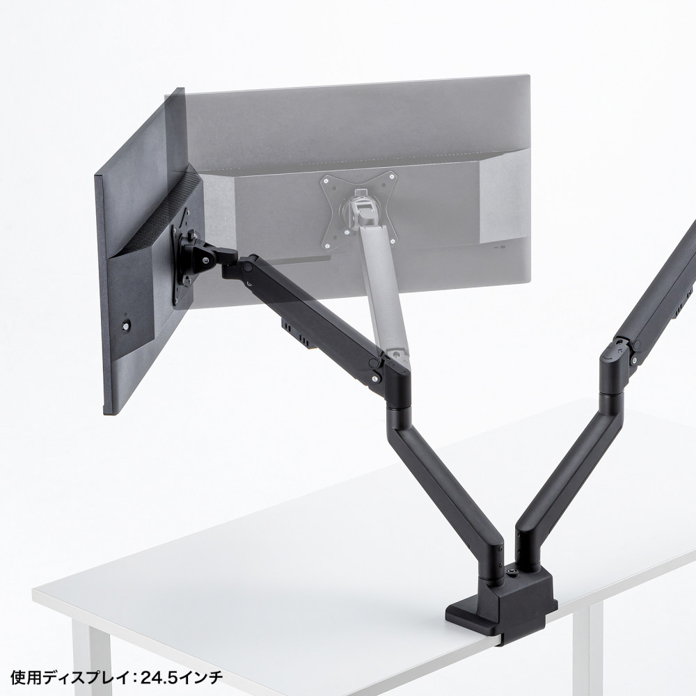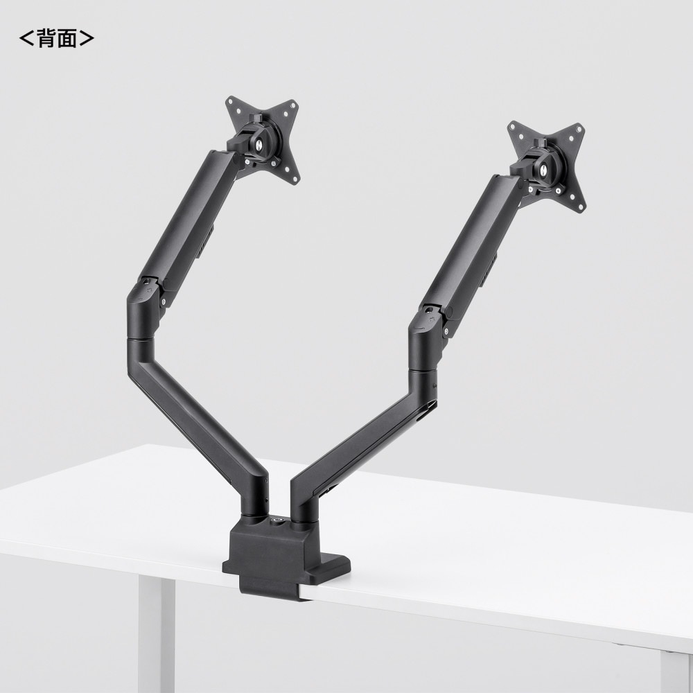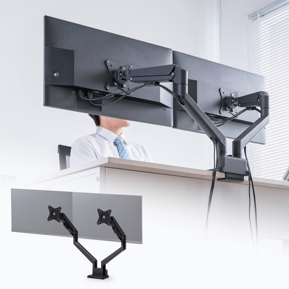 ■17〜32インチサイズのモニターに対応するガススプリング式のデュアルモニターアームです。