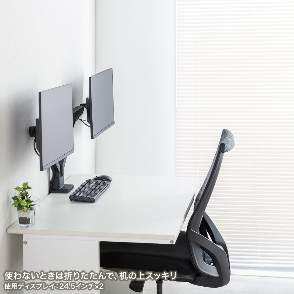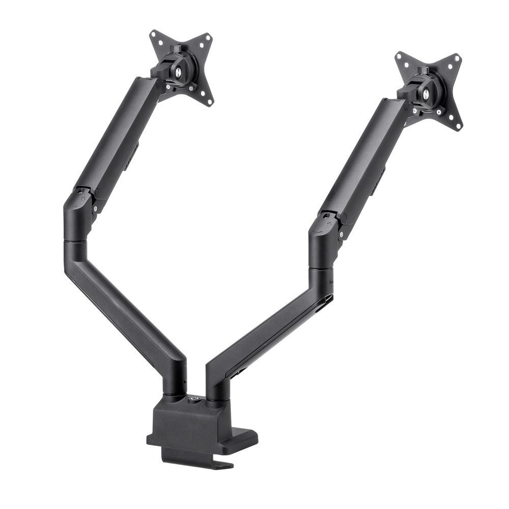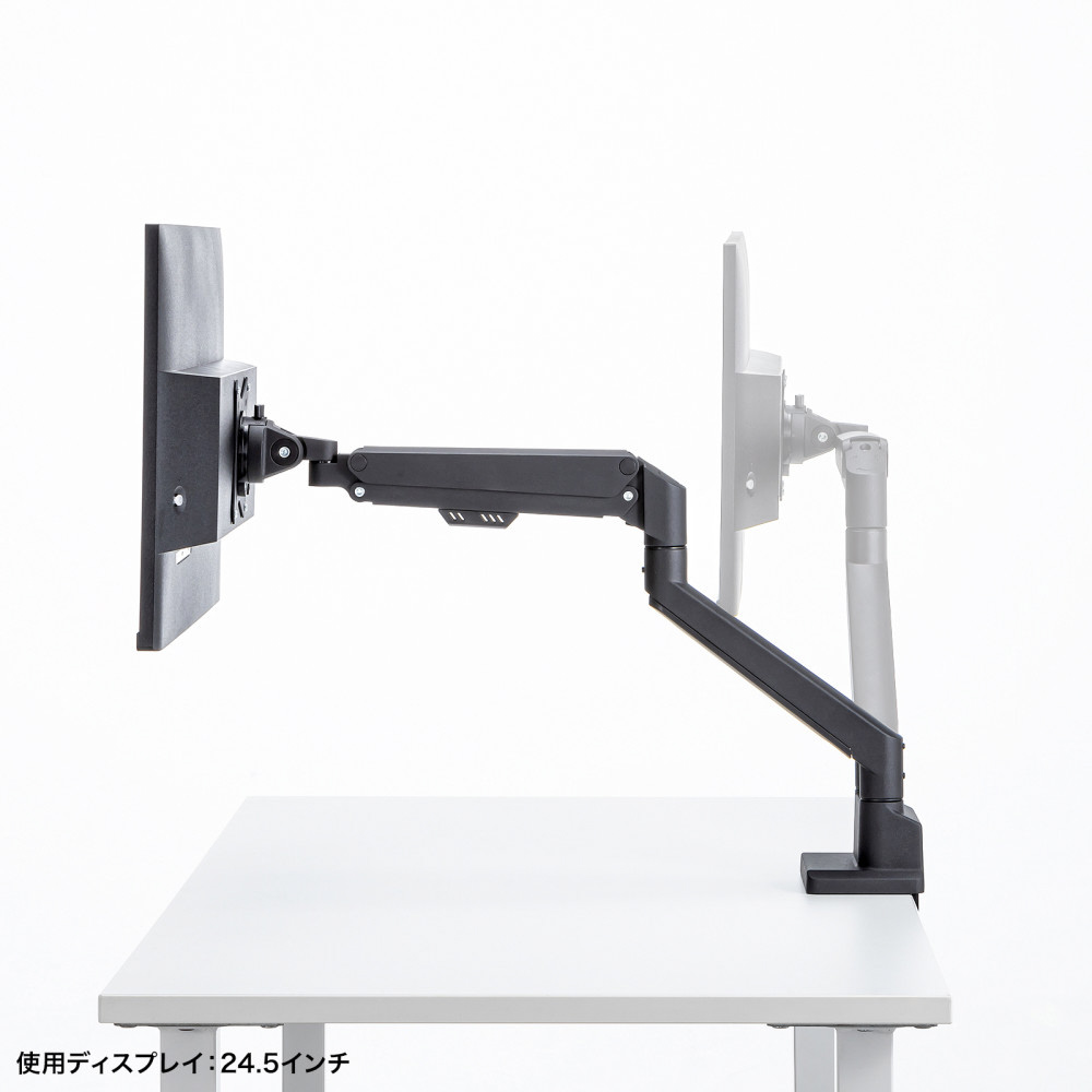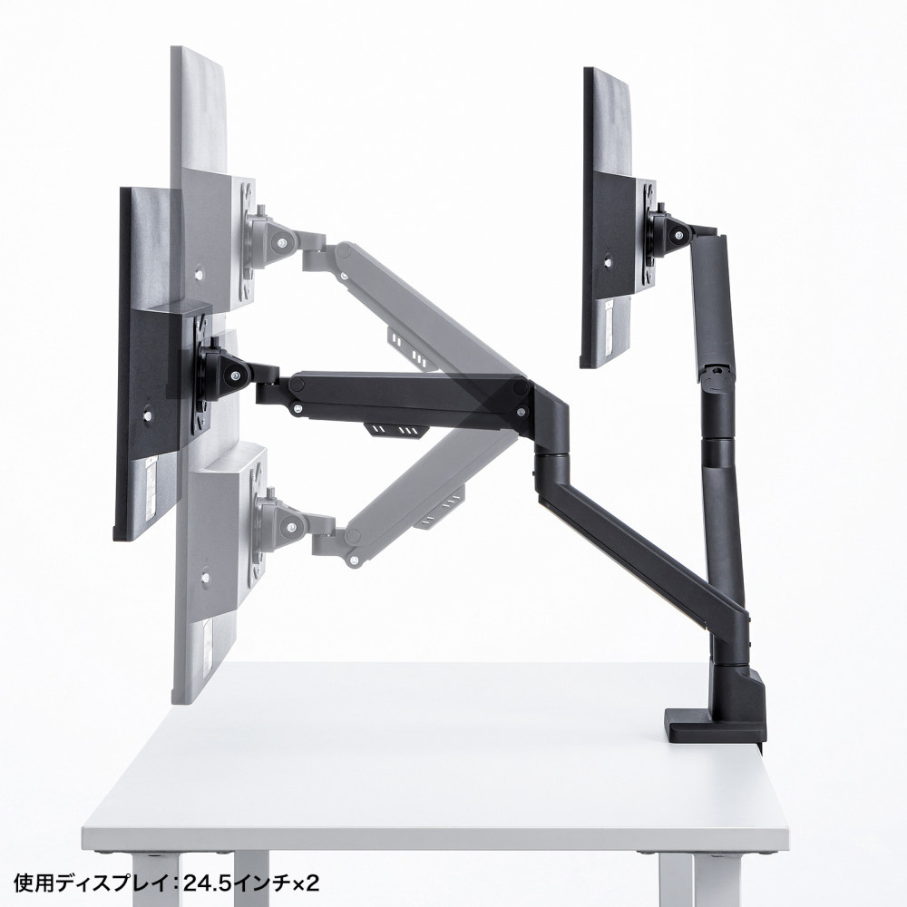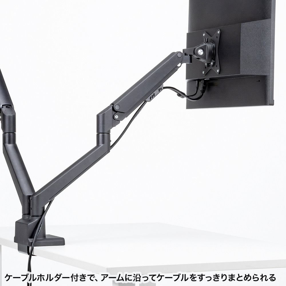 ■17〜32インチサイズのモニターに対応するガススプリング式のデュアルモニターアームです。