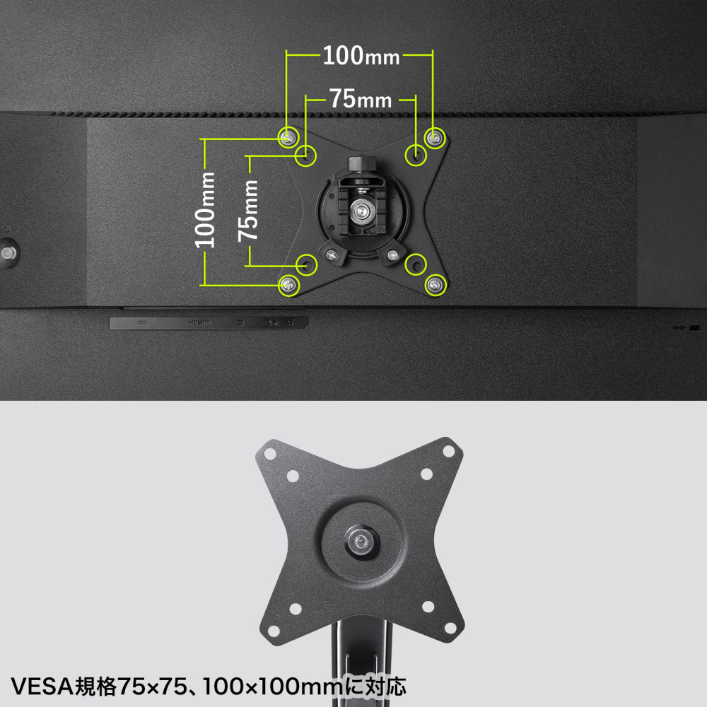 ■VESA75×75、100×100mmに対応しています。