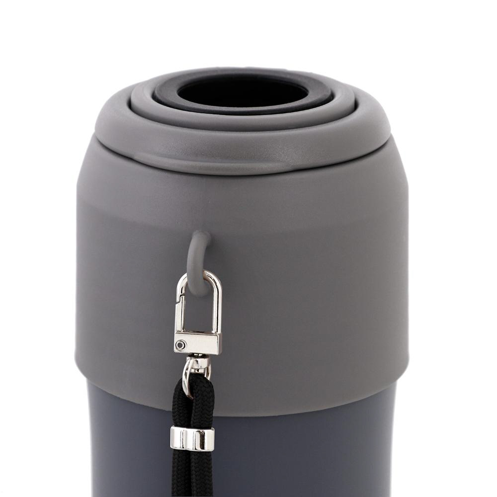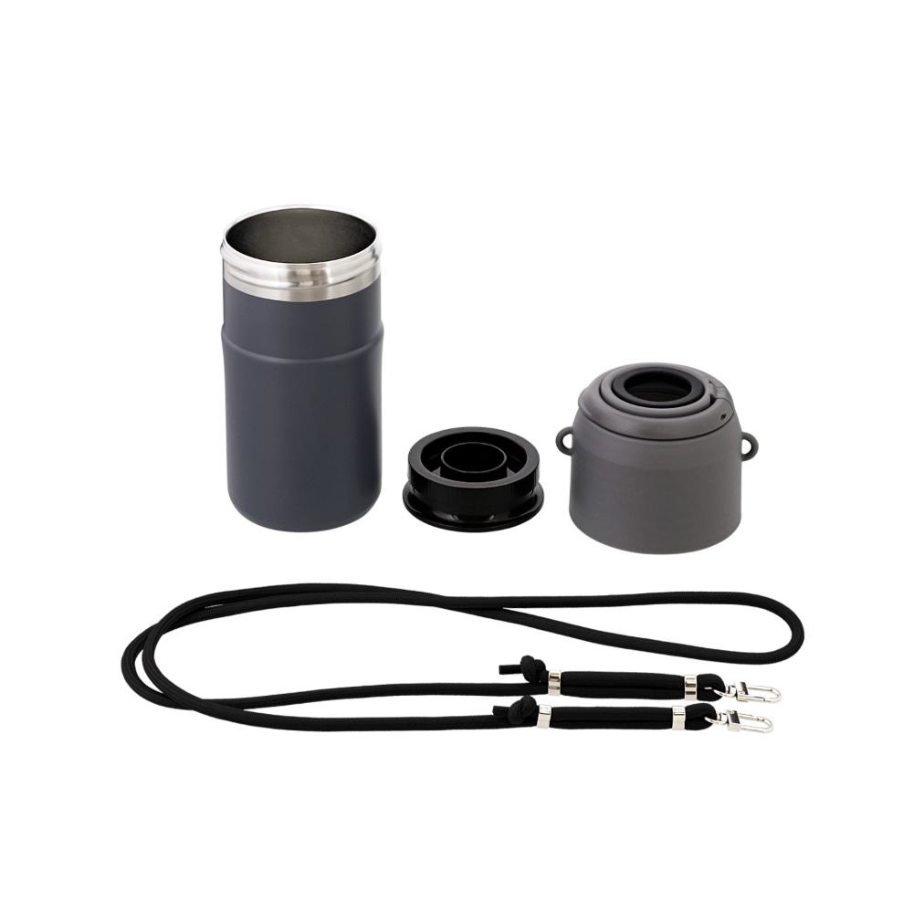 長さ調整できるショルダーストラップ付きで外出時にも水分補給しやすい。