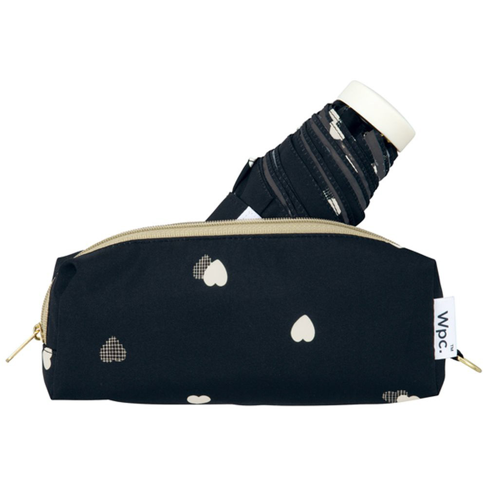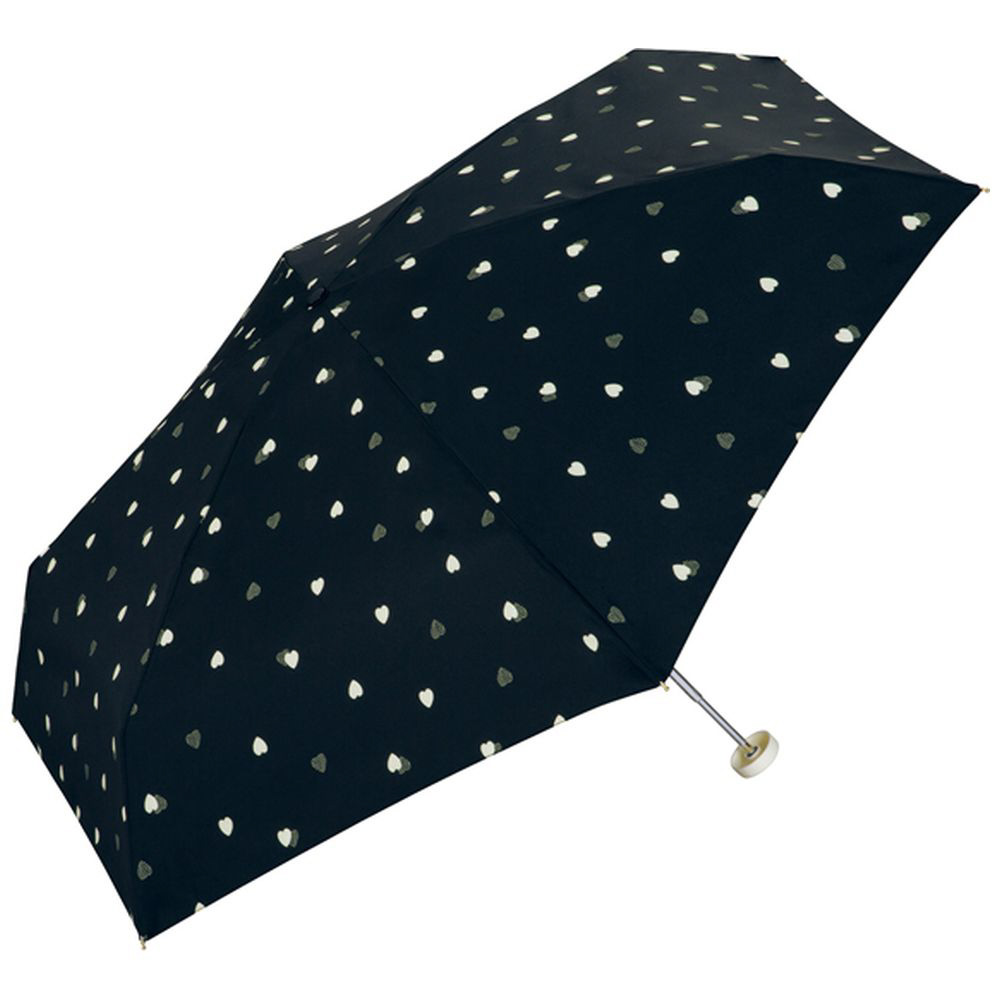 小振りなハートが散りばめられた、大人可愛いデザインの折り畳み傘。