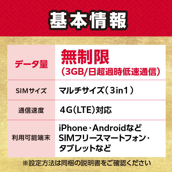 ・本SIMカードはiPhoneでの利用時、電波アイコンが表示されません ※ご利用には問題ございません