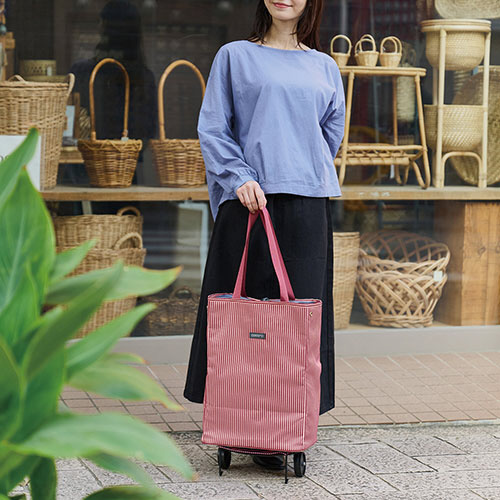 レップ ハンディトートカート 折りたたみ式・自立型・保冷保温機能 ストライプ レッド REP564707