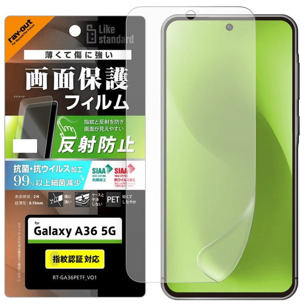 Galaxy A36 5G Like standard PETフィルム 反射防止 抗菌・抗ウイルス 平面保護 指紋防止 指紋認証対応 RT-GA36F/B1