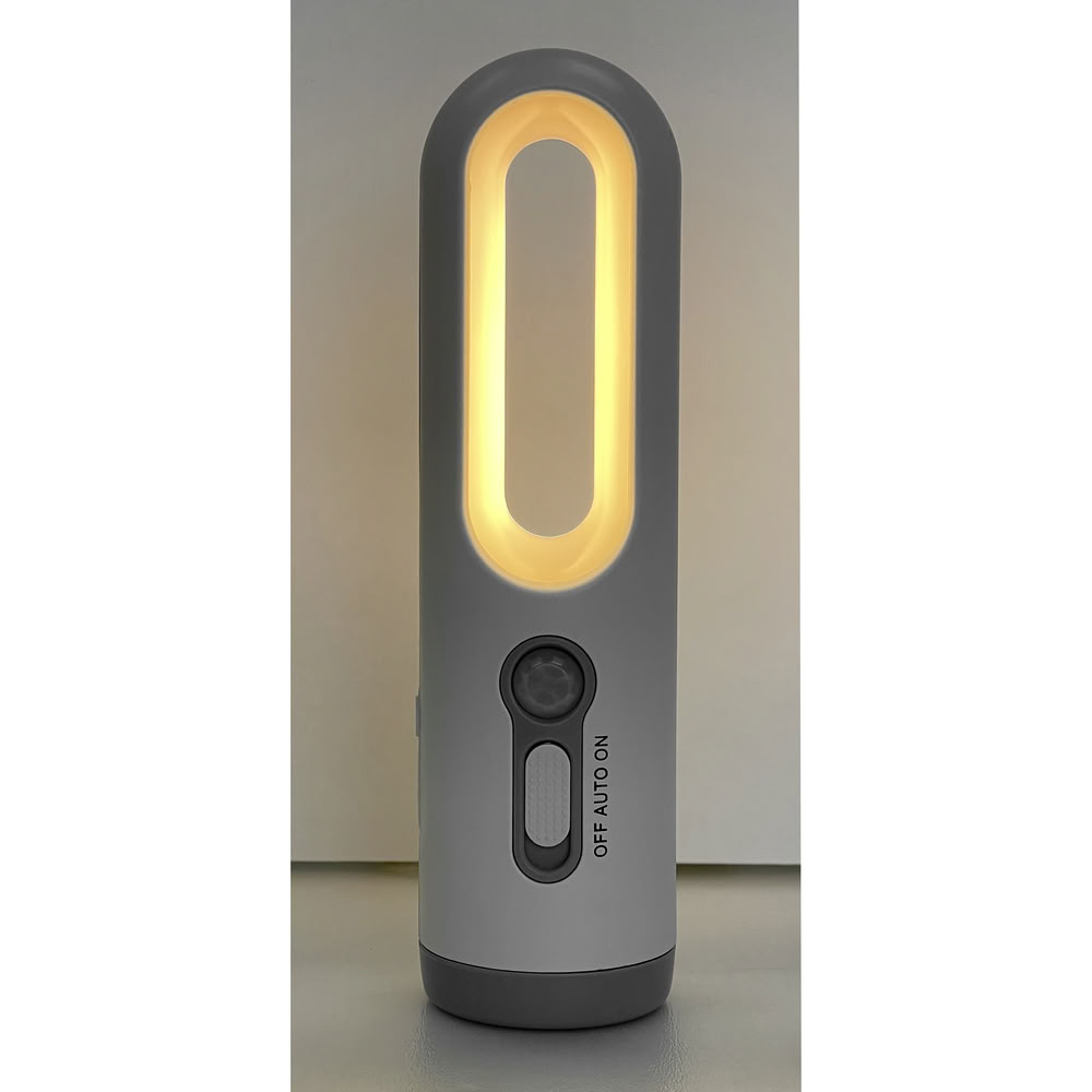 常時点灯モード・人感センサーモード、懐中電灯の3つのモード付ライト。【仕様】300mAhリチウムイオン電池使用。充電時間約2時間。[リングライト]約80lm、[ハンディライト]約100lm[付属品]USBケーブル