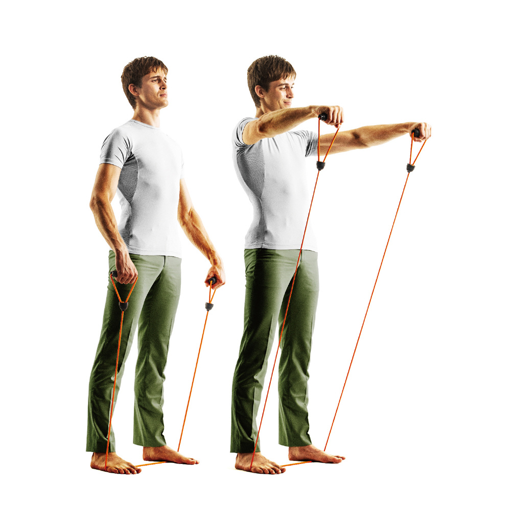 ■ハンドルを握ってストレッチロープを引き伸ばすことにより、上半身及び下半身の筋トレが可能です