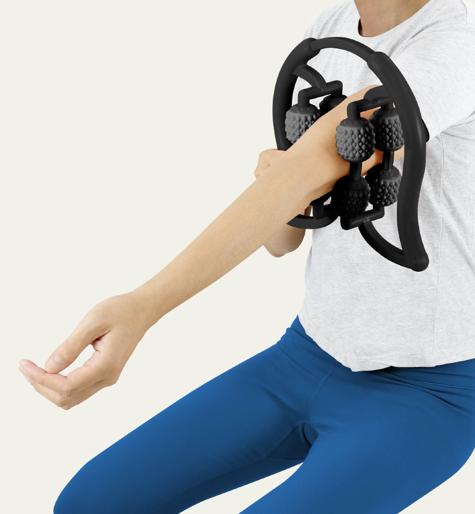 ■商品の挟む力とローラーの細かな突起で、自分で力を加えなくてもギューッとしっかり指圧できます