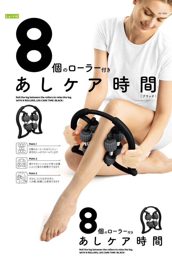 8個のローラー付きあしケア時間 ブラック 3B-4863