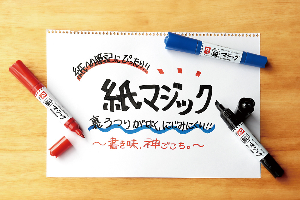 紙との相性が抜群で、引っかかりがなくスムーズな書き味を実現。濃く鮮やかな発色で、にじみにくく裏うつりしにくい水性顔料インクを採用。ツインタイプで太字も細字もこれ一本でOK!気になるニオイもなく、使いやすさにもこだわりました。紙だけでなく、ダンボール・布・ガラス・金属・木材など、さまざまな素材にも対応!さらに便利な『紙マジック専用補充液(40ml)』も同時発売。ながく、経済的にお使いいただけます。