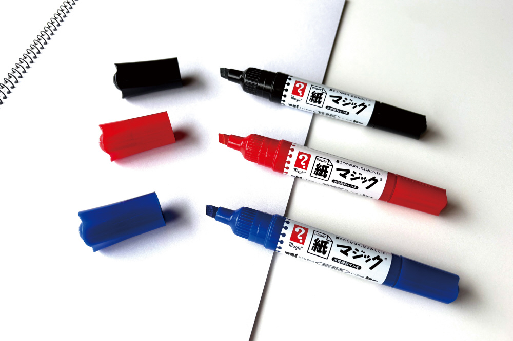 紙との相性が抜群で、引っかかりがなくスムーズな書き味を実現。濃く鮮やかな発色で、にじみにくく裏うつりしにくい水性顔料インクを採用。ツインタイプで太字も細字もこれ一本でOK!気になるニオイもなく、使いやすさにもこだわりました。紙だけでなく、ダンボール・布・ガラス・金属・木材など、さまざまな素材にも対応!さらに便利な『紙マジック専用補充液(40ml)』も同時発売。ながく、経済的にお使いいただけます。