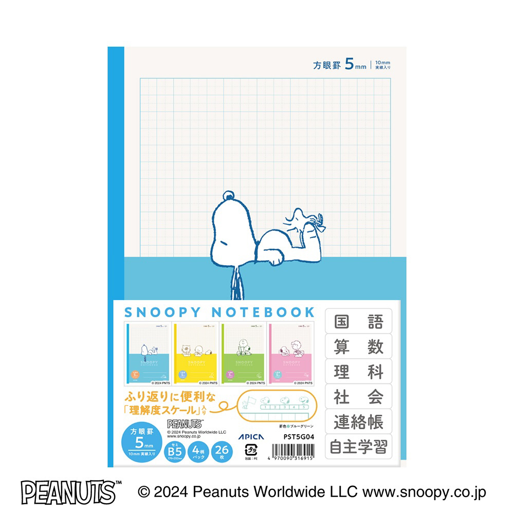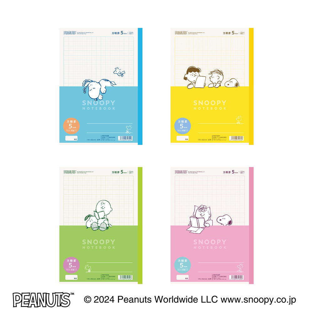 スヌーピー特殊罫パックノート 10mm実線入り 4冊束 [セミB5・B5/5mm/方眼罫線] PST5G04