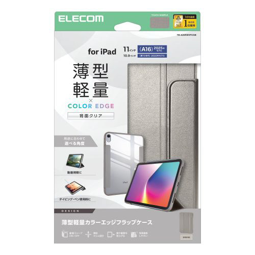 11インチ iPad(A16)、10.9インチ iPad(第10世代)用 フラップケース 薄型軽量 カラーエッジ 背面クリア グレージュ TB-A25RWVFCGB