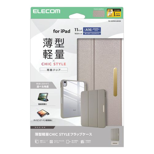 11インチ iPad(A16)、10.9インチ iPad(第10世代)用 フラップケース 薄型軽量 CHIC STYLE スリープ対応 グレージュ TB-A25RWVJM3GB
