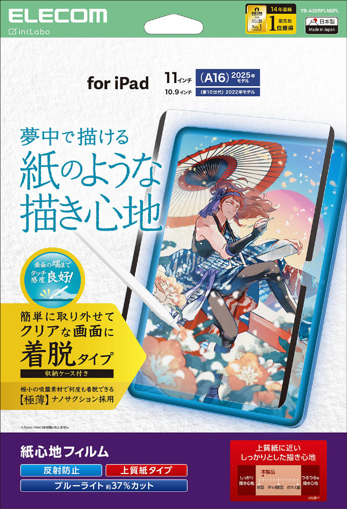 11インチ iPad(A16)、10.9インチ iPad(第10世代)用 フィルム 紙心地 着脱式 反射防止 上質紙タイプ TB-A25RFLNSPL