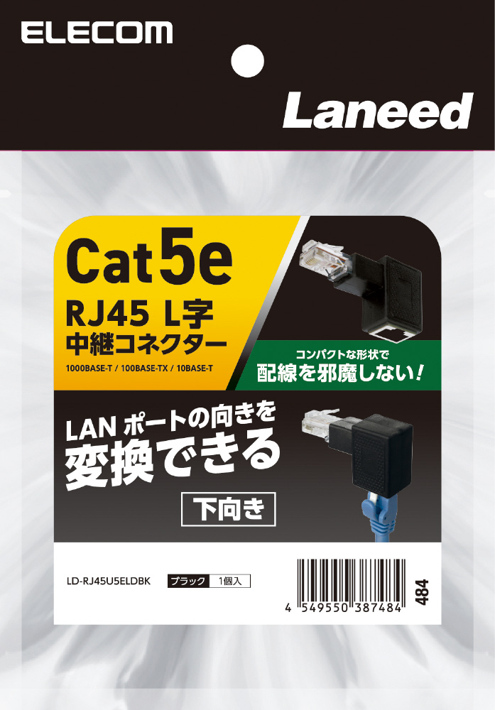 RJ45 L字変換コネクター [下向き] ブラック LD-RJ45U5ELDBK [カテゴリー5e]