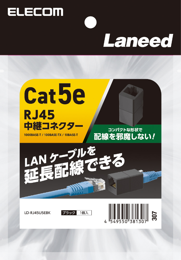 RJ45 中継コネクター ブラック LD-RJ45U5EBK [カテゴリー5e]