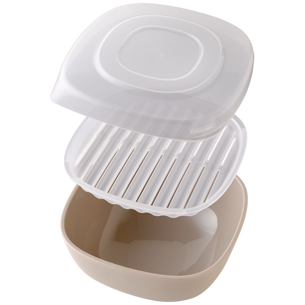 中身を確認できる透明な蓋とスノコなので保存容器としても◎。