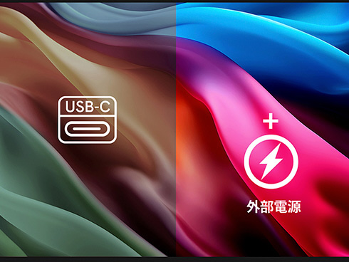 ■インターフェイスは、miniHDMI1.4 x1、USB-C x1、USB-C(給電専用) x1を搭載。パソコンだけでなく、様々なデバイスと接続が可能です。