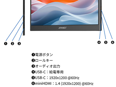 USB-C接続 モバイルモニター [12.2型] JN-MD-IPS122WX [WUXGA(1920×1200) /ワイド]