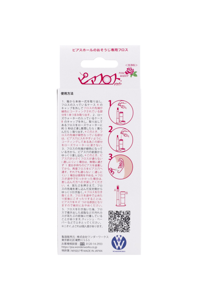 和紙フロスをハーブウォーターに浸み込ませて、耳たぶの表側から和紙フロスを入れて、裏側からゆっくり引き出し。<BR>