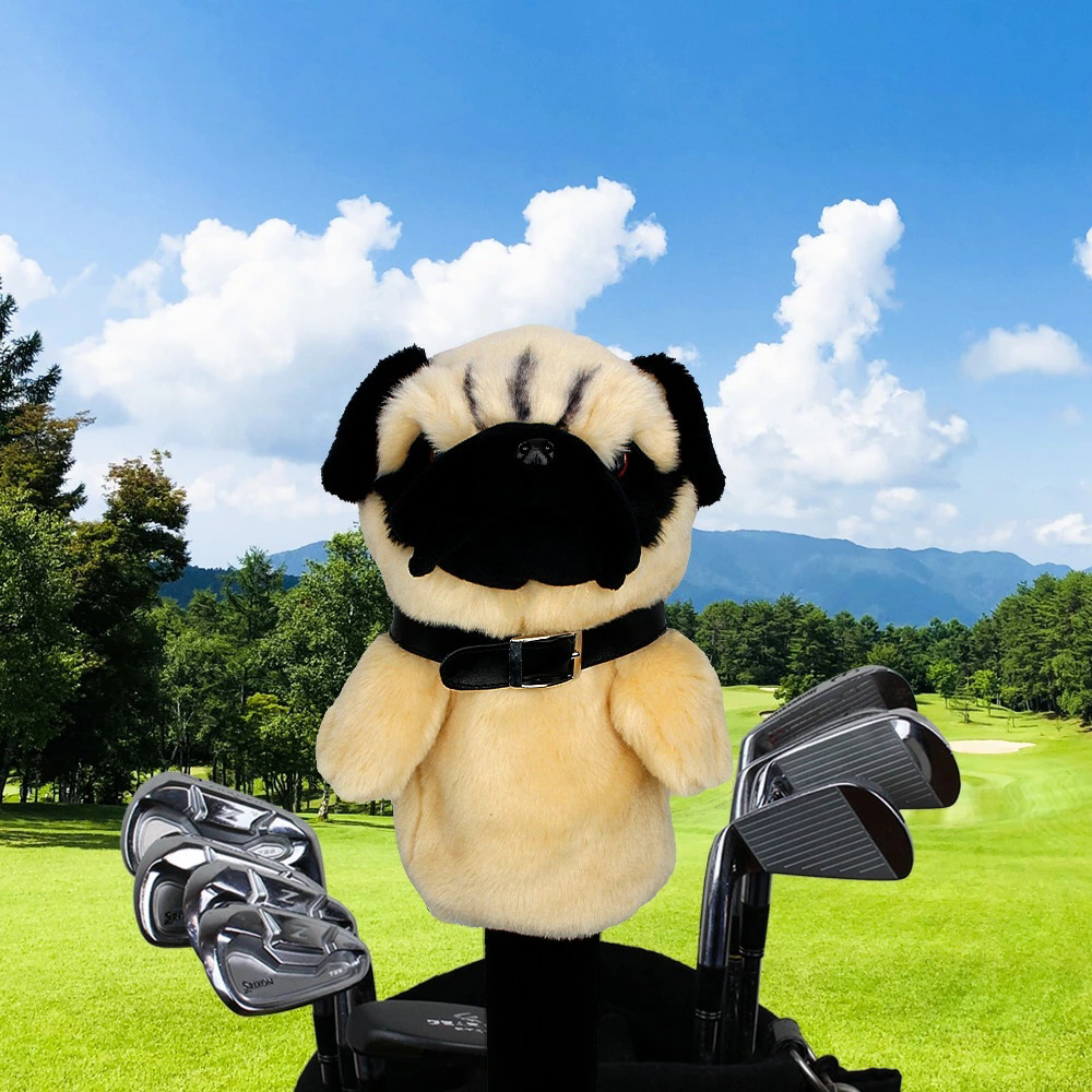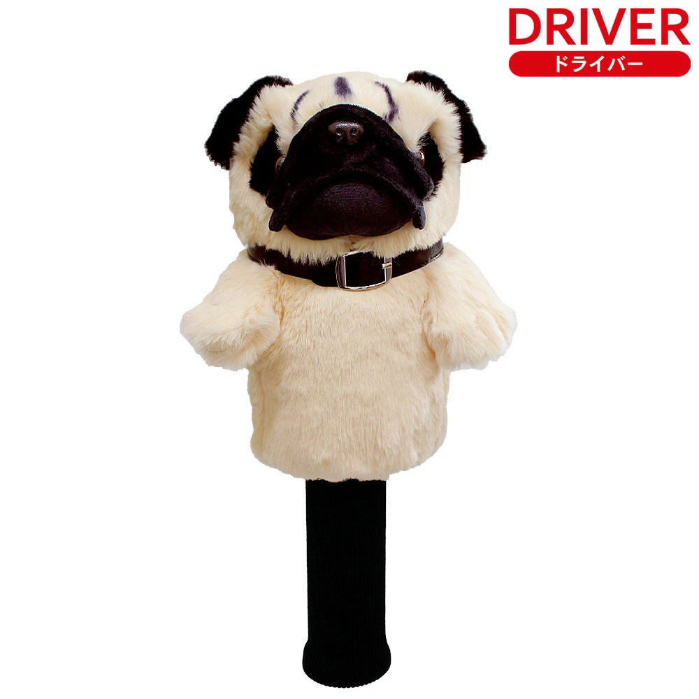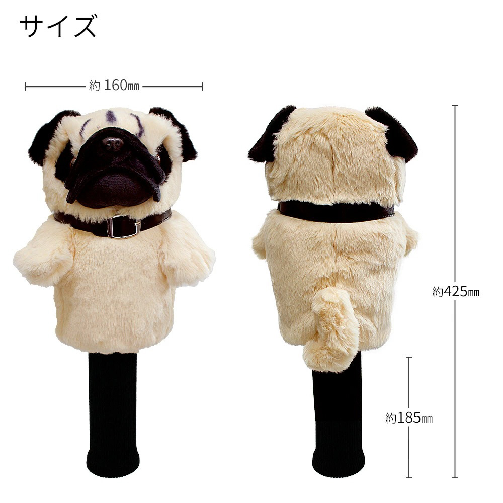 短鼻でクリクリとした瞳に愛嬌のある表情が可愛いパグのヘッドカバーです。